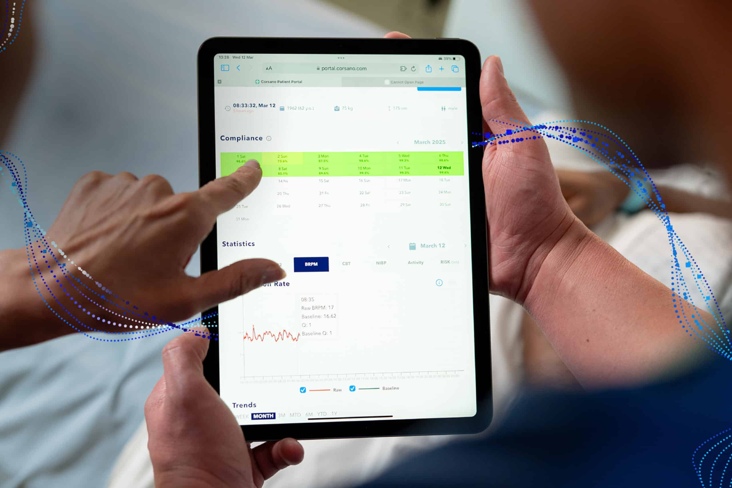 Corsano’s wearable devices are designed for continuous, comfortable use in hospital and post-discharge settings.